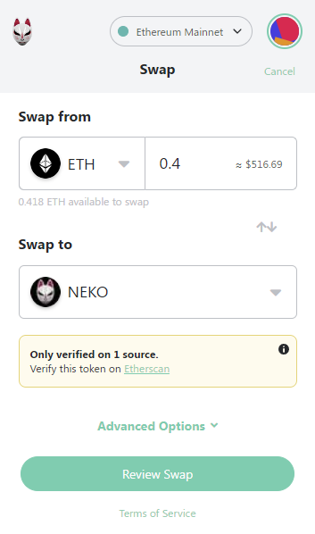 NekoMask's internal swap fees are routed back to DeFi in the form of ETH rewards for stakers of Neko.